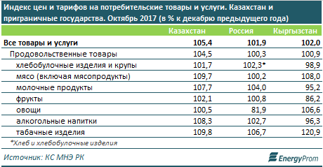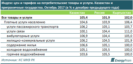 По итогам октября уровень инфляции в РК составил к началу года 5,4 процента. Для сравнения, в соседней по ЕАЭС России удорожание товаров и услуг в декабре 2016 года составило всего 1,9 процента, в Кыргызстане - 2 процента.