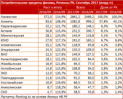 В целом за год рынок розничного потребительского кредитования вырос на 15 процентов. Объем таких кредитов, выданных физическим лицам, к концу сентября 2017 года составил 2,9 триллиона тенге. Отмечается, что к концу сентября 2016 года объем потребительских кредитов, наоборот, уменьшался на 6,5 процента.
