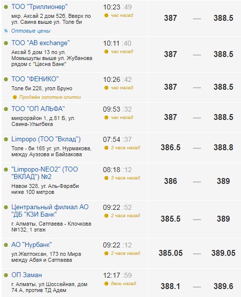 Первая сделка торгов 19 августа прошла по цене 386,35 тенге. Это стало минимальной стоимостью. Максимальная цена достигла 386,95 тенге. Объем торгов достиг 72 миллионов долларов.