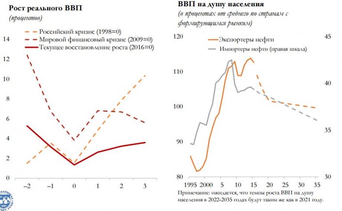 "В ближайшие годы уровень цен на биржевые товары и темпы роста в странах, являющихся основными торговыми партнерами, будут оставаться низкими. Прогнозируется медленный и непрочный подъем экономики в условиях вялой внешнеэкономической конъюнктуры, обострения факторов уязвимости и снижения пространства для маневра в сфере экономической политики", - сказал заместитель директора департамента стран Ближнего Востока и Центральной Азии МВФ Юха Кяхконен.
