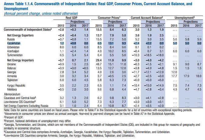 Международный валютный фонд (МВФ) в своем новом прогнозно-аналитическом докладе World Economic Outlook снизил прогнозы по динамике ВВП Казахстана в 2017 году с 1 до 0,6 процента, сообщает корреспондент Tengrinews.kz.