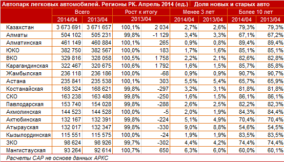 После Актюбинской и Мангистауской областей лидерами по количеству новых авто не старше трех лет оказались Астана, Актюбинская и Западно-Казахстанская области. Доля свежих авто в Астане составляет 5,5 процента от регионального парка. Доля новых авто в Актюбинской области составляет 5,1 процента, а в Западно-Казахстанской - 4,4 процента.