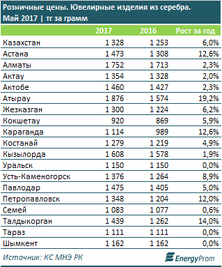 Серебряные украшения подорожали к лету на 6 процентов за год, до 1,2 тысячи тенге за грамм.