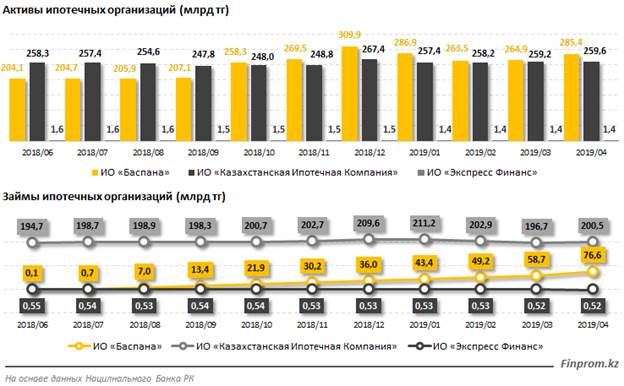 На конец апреля текущего года совокупные активы ипотечных организаций достигли 546,3 миллиарда тенге, увеличившись в два раза по сравнению с аналогичным периодом прошлого года. Доля ссудного портфеля в активах составила 50,8 процента, или 277,6 миллиарда тенге, за год сумма увеличилась на 47,1 процента. Ипотечные организации наращивают долю участия в экономике страны: так, доля активов ипотечных организаций от ВВП составила уже 0,9 процента, годом ранее доля была на уровне 0,4 процента.