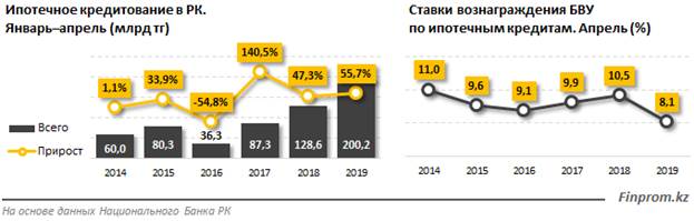 Также одним из стимулов увеличения ипотечного кредитования является снижение процентной ставки вознаграждения. На конец апреля 2019 года средневзвешенная процентная ставка БВУ по ипотеке составила 8,1 процента, в аналогичном периоде прошлого года ставка была равна 10,5 процента.