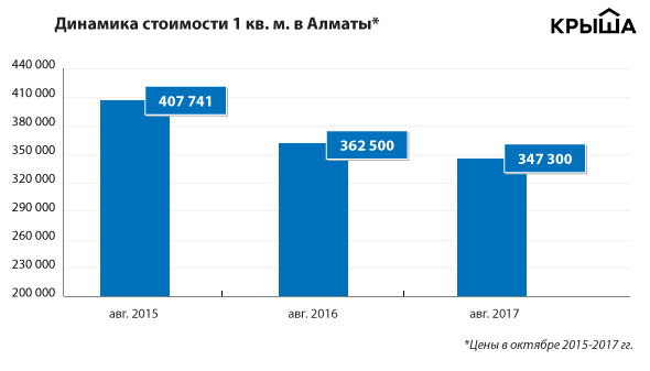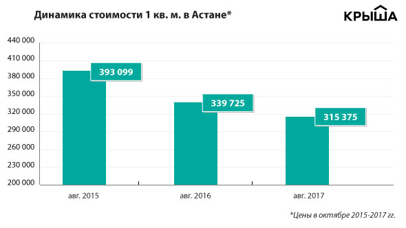 К примеру, сопоставив октябрьские показатели за 2015, 2016 и 2017 годы в Астане и Алматы, можно заметить, что за три года цены снизились на 20 и 15 процентов соответственно. При этом за последние 12 месяцев цены скорректировались в среднем только на 5 процентов.