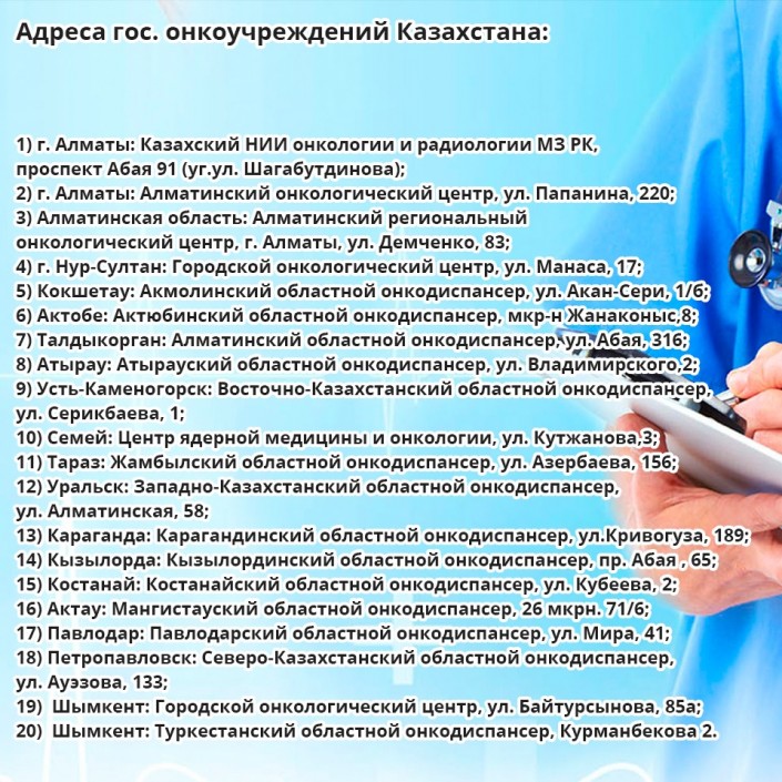 Добавим, что 21 сентября, в субботу, в КазНИИ онкологии и радиологии, а также во всех региональных онкодиспасерах будет проходить День открытых дверей. Любая женщина может бесплатно проконсультироваться с онкологами, получить рекомендации и сдать мазок на онкоцитологию.