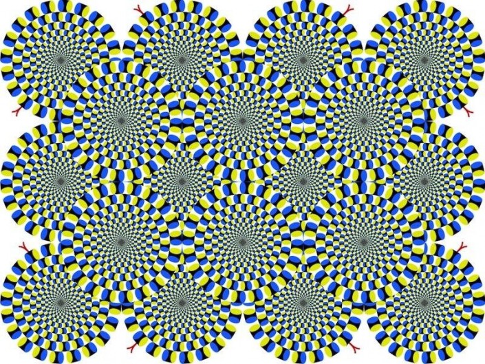 Суть таких иллюзий в том, что, когда мы смотрим на статичную картинку, нам кажется, что изображение движется.