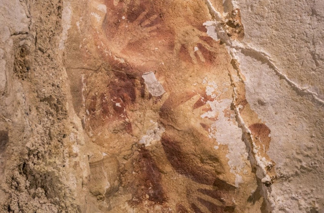 До 2014 года самыми древними наскальными рисунками были изображения животных эпохи позднего палеолита (30-32 тысячи лет), найденные в пещере Шове во Франции. Однако в сентябре 2014 года ученые обнаружили пещерные рисунки на индонезийском острове Сулавеси, восточная часть Борнео, чей возраст не менее 40 тысяч лет. Они изображают местных животных и отпечатки ладоней. Одному из изображений под названием Babirussa (местный вид свиньи) официально установили возраст - минимум 35 400 лет, что делает его древнейшим образцом изобразительного искусства.