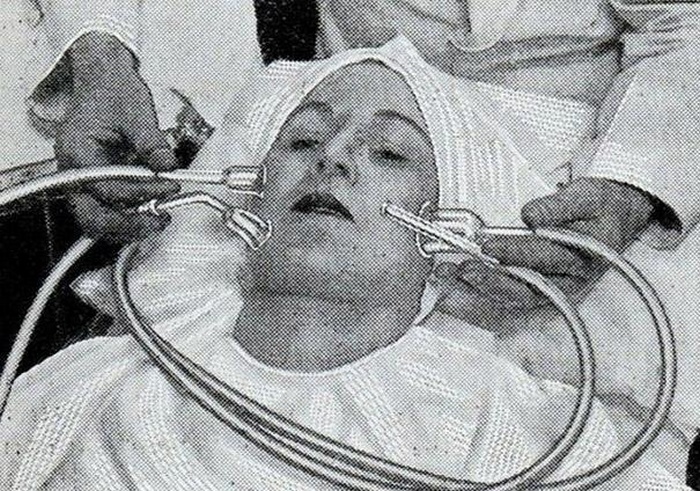 В 1940 году была разработана электрическая маска, которая грела кожу лица, чтобы стимулировать кровообращение и заставлять кожу выглядеть свежее. Был, правда, негативный фактор - дети начинали смертельно бояться своих матерей.