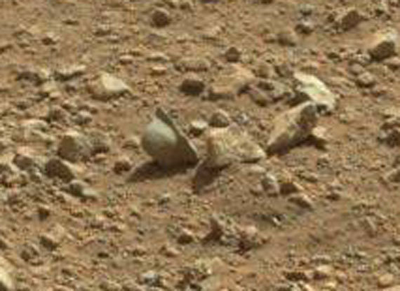 А годом раньше, в 2012-м, тот же Curiosity сфотографировал нечто похожее на указательный палец человека. На нем даже четко видны очертания ногтя. Можно, конечно, бесконечно строить догадки о том, что стало с обладателем этого гигантского окаменевшего "пальца". А можно смириться с объяснением невозмутимых ученых: это просто камень, господа!