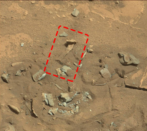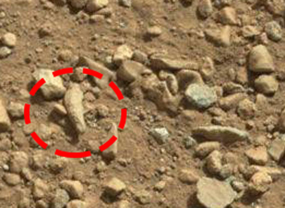 Просто поразительно, сколько "человеческих останков" замечают на фотографиях с Марса блогеры-энтузиасты! В середине августа 2014 года все тот же Curiosity подарил им взрыв эмоций, показав вот эту "кость".