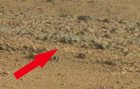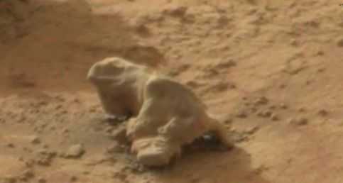 Американский марсоход Curiosity поймал в кадр это "животное" в январе 2013 года, но, возможно, это так и осталось бы незамеченным, если бы не внимательные блогеры. Признаки сходства, и правда, поражают - хорошо различимы "голова", "подгрудок", "хвост", "задняя нога" и даже "глаз". И все же это просто камень, убеждают ученые.
