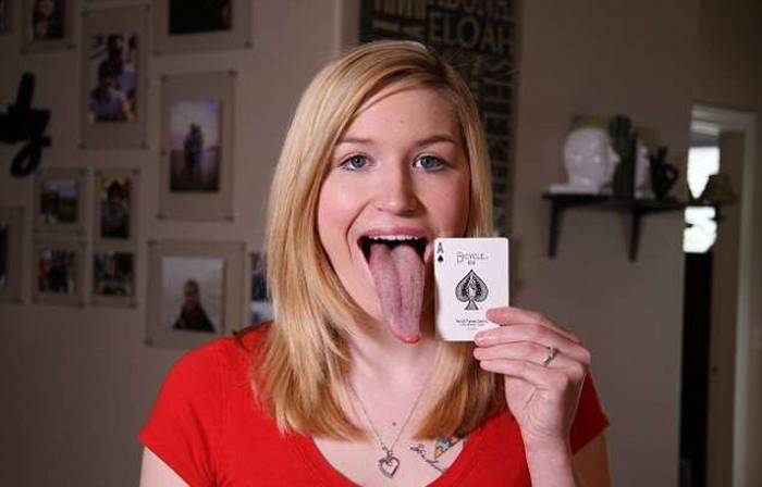 Эта часть тела девушки превышает невероятных 10 сантиметров (4 дюйма), предоставляя ей уникальную возможность полизать не только свой нос, подбородок и локоть, но и глаза.