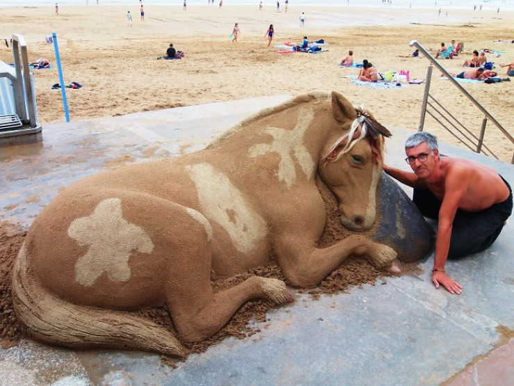 Необычным хобби Андони Басторрика из Испании увлекается уже более 10 лет. Он любит лепить огромные песочные скульптуры, которые восхищают детализацией и реалистичностью. Его увлечение лепкой началось, когда он, прогуливаясь по пляжу, попробовал создать образ русалки. После этого он решил развивать свой талант дальше.