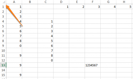 Выделение всех ячеек одним кликом