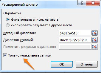 Уникальные записи могут быть полезными, если вам нужно выделить в таблице неповторяющуюся информацию. К примеру, по одному человеку каждого возраста. Для этого выберите нужный столбец и нажмите "Дополнительно" слева от пункта "Фильтр". Выберите исходный диапазон (откуда копировать) и диапазон, в который нужно поместить результат. Не забудьте поставить галочку.
