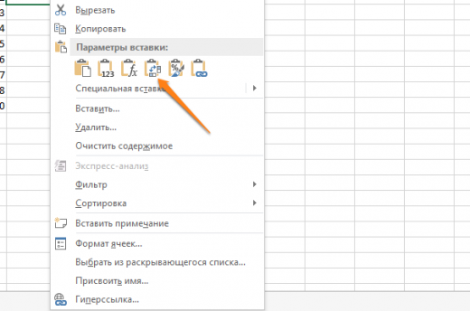 Скопируйте диапазон ячеек, который нужно транспонировать. После этого кликните правой кнопкой на нужное место и выберите специальную вставку.