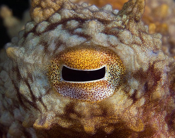 У осьминога прямоугольный зрачок, что дает обзор на все 340 градусов. У человека, кстати, всего 190 градусов.