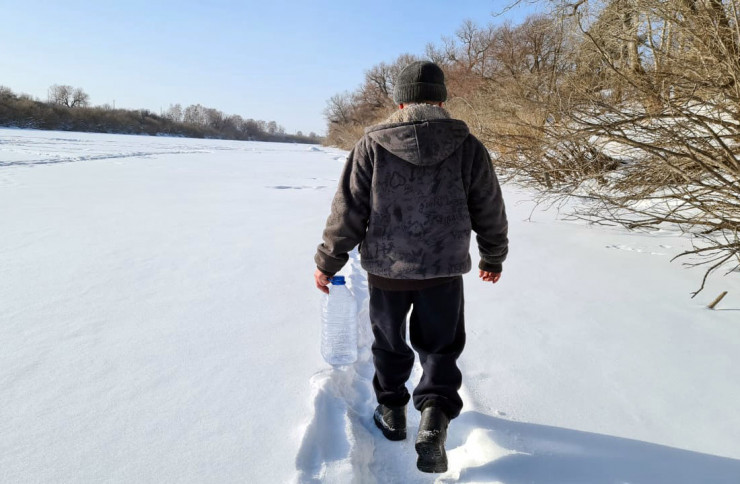 Ночь сегодня выдалась холодной – родник замерз. Николай теперь будет ждать вечера, чтобы лед отошел и он смог снова набрать воду.