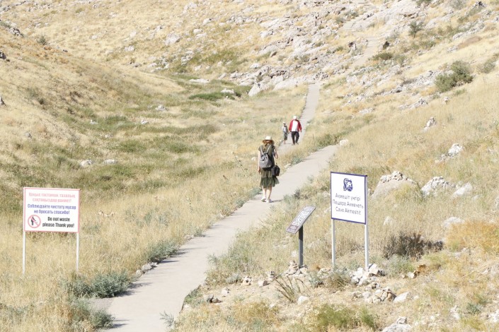 Пещера Акмешит - одна из самых популярных достопримечательностей Туркестанской области. Вместе с этой подземной мечетью туристы посещают мавзолеи Домалак-ана, Байдибек ата и Кос-ана, которые находятся по дороге. Обойдется поездка в 3 тысячи тенге для взрослых и 2,5 тысячи для детей, студентов и пенсионеров. В сумму входят трансфер, перекус, сопровождение, фотосъемка… и палки для ходьбы. Поистине, это место, где не стоит торопиться.
