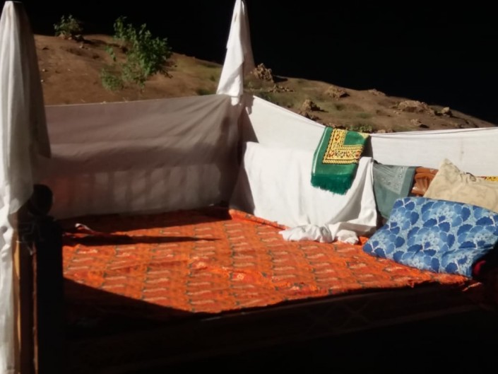 Внутри пещеры имеются и более пригодные места для молитв. Установлен топчан с ковром и корпе.