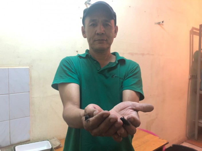 "Яйца важно вовремя отделить от взрослых, потому что жучки их съедают. После всего длительного процесса часть жучков, червей и личинок становится пищей для животных, остальные остаются на разведение. Это самый смак для сурикатов, ежиков и ящериц", - поясняет Исраил Исаев.