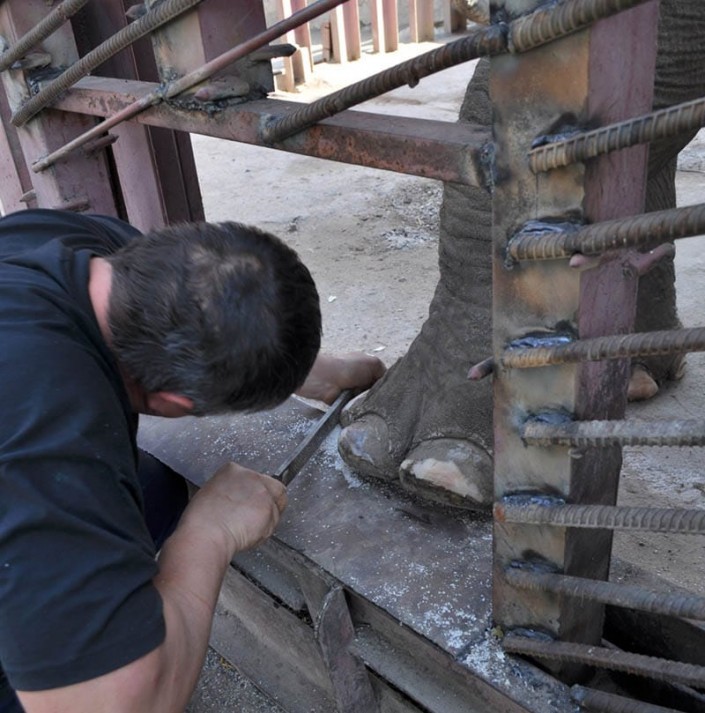 Григорий Береснев около 20 лет работает в зоопарке Алматы. Как поясняет специалист, педикюр слонам нужен не для самолюбования, а чтобы избавиться от паразитов и мозолей.