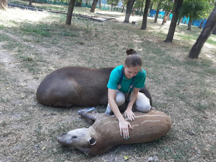 "Обожаю тапиров, потому что это очень ласковые и отзывчивые животные. Они всегда рады тебя видеть. Вообще, они неприхотливые животные. Но тапиров нужно разминать, они должны много двигаться, чтобы не было проблем с лишним весом. А массаж улучшает циркуляцию крови. Тапиров я массирую, в частности, в области грудной клетки, потому что эти животные любят много купаться и им надо помочь избавиться от застоев в легких", - уточнила Алина.