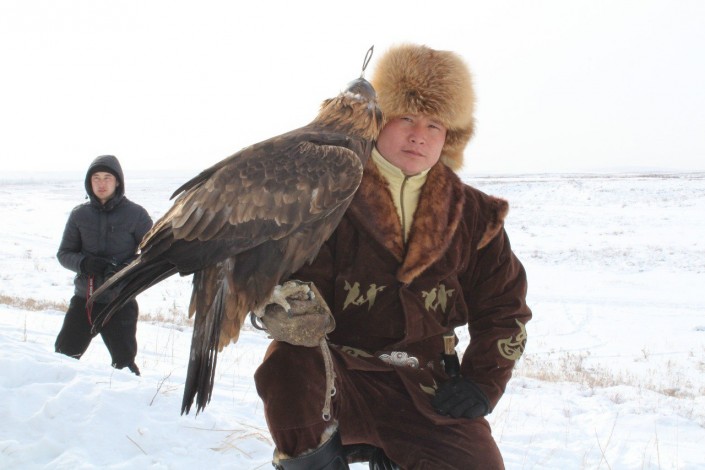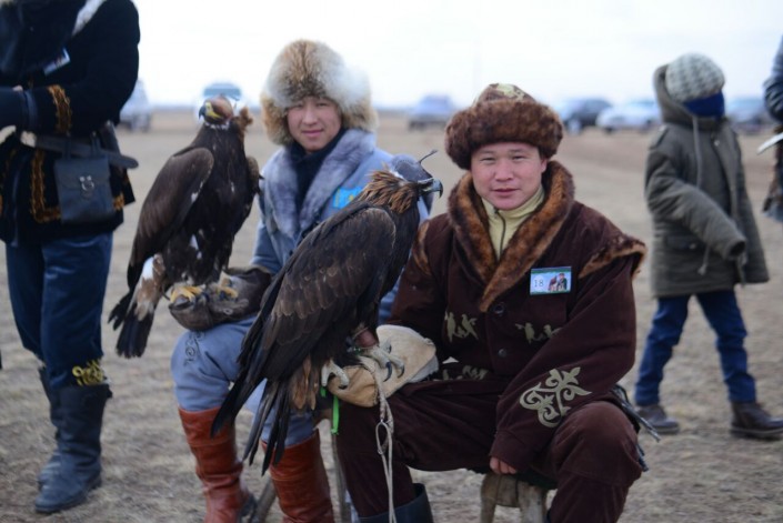 "Беркуты передаются нам из поколения в поколение. В нашей семье существует традиция с малых лет обучать детей охоте с беркутами. Лично я начинал потихоньку: гладил их, поднимал, а потом появилась какая-то неразрывная связь. Они очень злопамятные, поэтому мы никогда их не ругаем, всегда бережно относимся. Беркуты - очень сильные птицы. От них не сбежать зайцам, лисам, шакалам и волкам. Едят эти птицы только мясо", - говорит Аян.