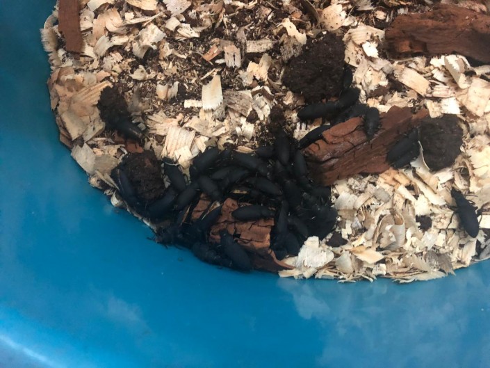 Жуков содержат в тазиках с торфом и опилками. Из отложенных яиц через месяц появляются личинки.