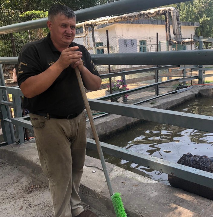 А Алина Чимирук - массажист. В зоопарке Алматы дважды в день массирует трех тапиров: взрослых и одного малыша. Также она проводит осмотр с термометром для измерения температуры.