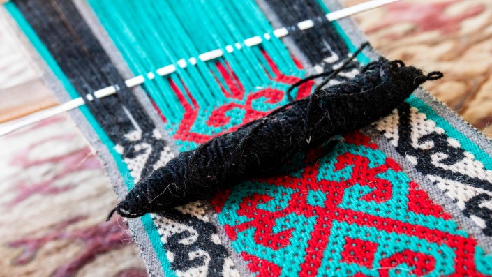 "На создание одного стандартного ковра длиной в три, шириной два метра уходит от трех до шести месяцев. Он вяжется на станке из натуральной шерсти. Я вывожу на коврах исключительно национальные мотивы: это орнаменты, изображения животных, наша природа. А своим детям я связала ковры с их именами", - говорит Булбул.