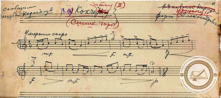 Нотные записи песенных напевов Адаевского уезда. Фото предоставлены Центральным Государственным архивом Республики Казахстан.