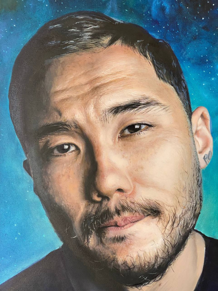 Девушка рисует в основном гиперреалистичные портреты маслом на холсте, на одну работу уходит 1-2 месяца кропотливой работы. Но саму идею или концепцию картины и эскиз Асель может обдумывать несколько лет.