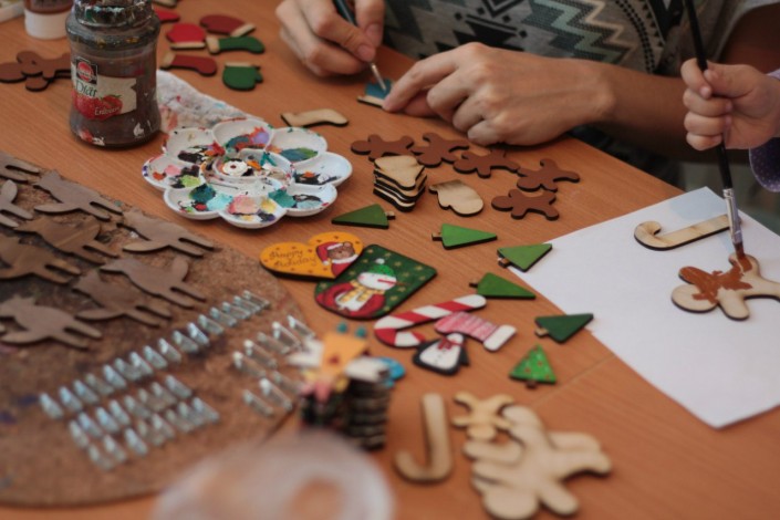 "Каждый сюжет просил развития. Мы брали новую доску - и вперед! Первая мысль расписывать дощечки пришла к нам в Киеве 7-8 лет назад, когда мы купили новогодние игрушки из дерева в маленькой лавочке на Бессарабской площади. Отсюда все и началось".