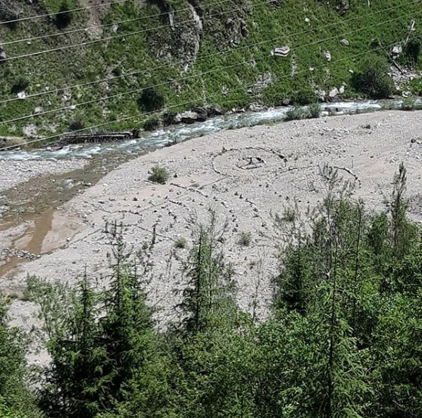 Рисунок с солнцем был полностью завершен в прошлом году. Он виден, как уверяют авторы, не только с канатной дороги Шымбулака, но и из космоса. Однако несколько лет назад в местности разлилась река.