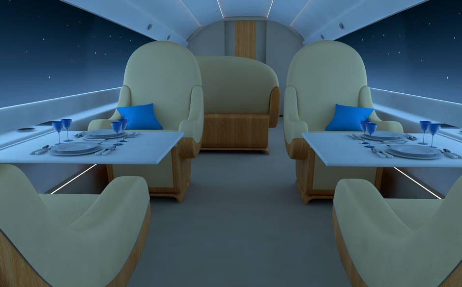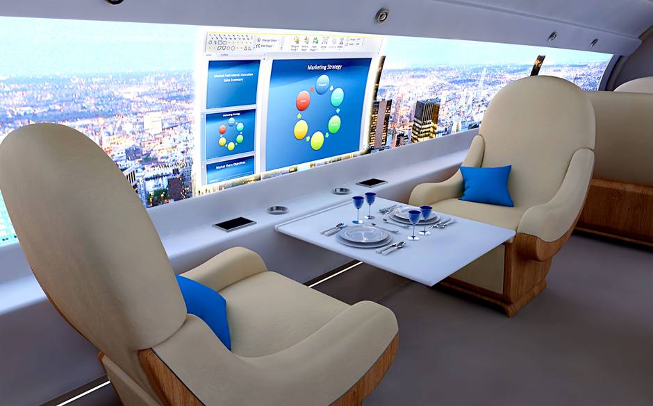 Исследователи утверждают, что окна являются одним из самых крупных источников ненужного веса в пассажирских самолетах. Сплошные стены без окон являются более прочными и могут быть сделаны тоньше. Дисплеи на органических светодиодах предоставят пассажирам впечатляющий панорамный вид на небо, весь спектр цифровых развлечений и возможность выбрать услуги, предоставляемые авиакомпанией на борту самолета.