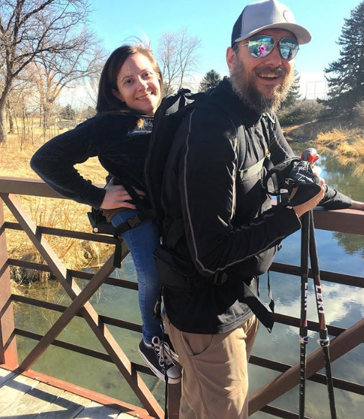 "Мелани - пушинка, - смеется Тревор. - У нас специальный рюкзачок-кресло, она садится в него, я надеваю рюкзак на спину и ношу любимую".