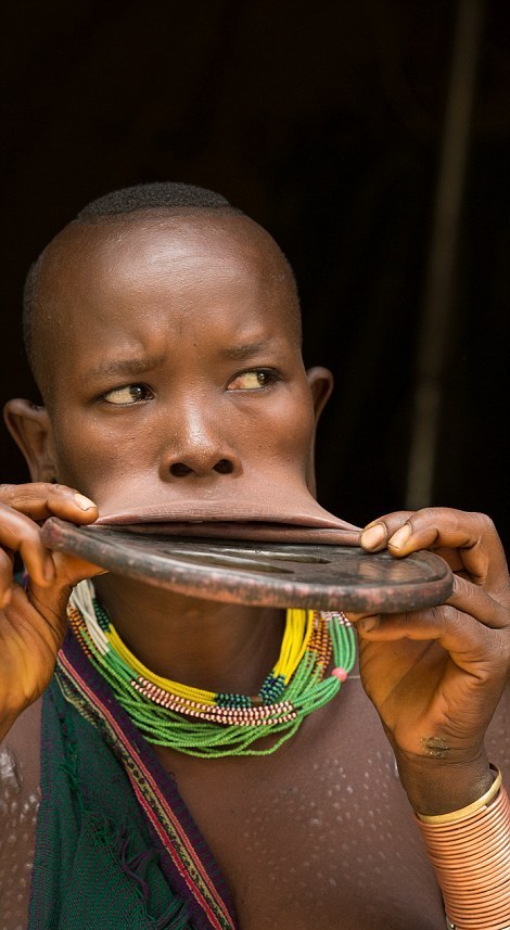 Девушка с самым большим губным диском в мире © Abraham Joffe\Diimex