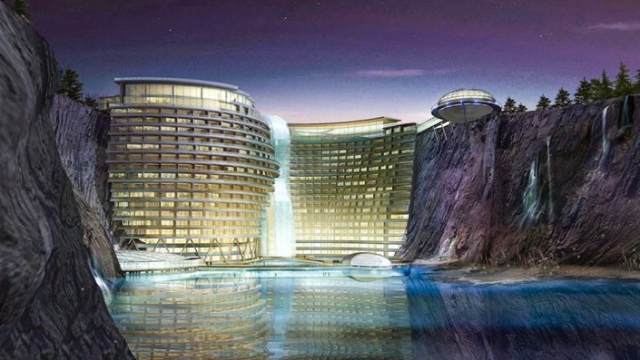 Shimao Wonderland Intercontinental - это новейший отель в Шанхае. Архитекторы решили, что заброшенный карьер не должен пустовать, и поэтому сейчас там именно то, что мы видим на фотографии. В отеле 328 номеров, некоторые из них даже находятся под водой.