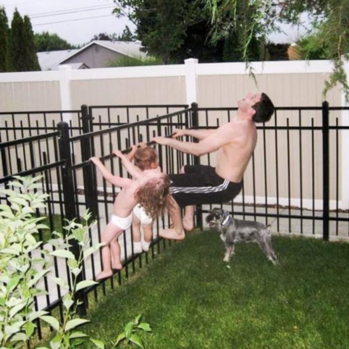Папа, как и прежде, ищет приключений, но вот качели уже не выдерживают.