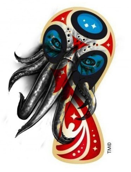 Шутники увидели в эмблеме мундиаля лицо инопланетянина, ядерный гриб, рыло поросенка, Владимира Путина, Человека- паука, персонаж картины "Крик" и даже цветной сперматозоид. Ниже представлены самые интересные вариации.
