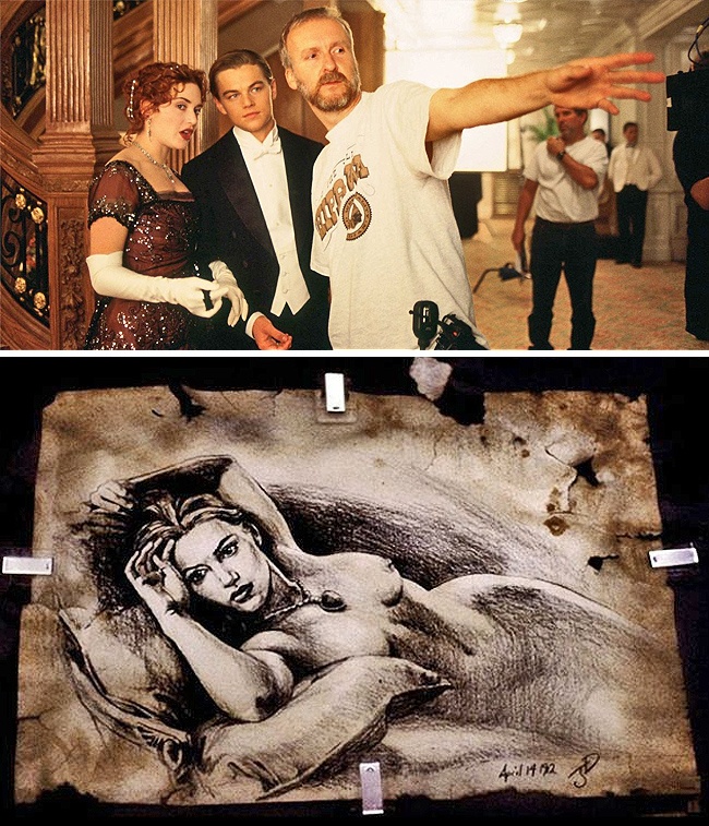 Знаменитый портрет Роуз, нарисованный Джеком в фильме "Титаник", на самом деле сделан Джеймсом Кэмероном, впрочем, как и другие зарисовки в альбоме Джека.