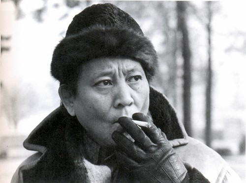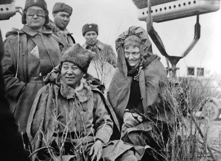 Сидит режиссер Мажит Бегалин со своей женой (справа) Олесей Ивановой, 1967 год.