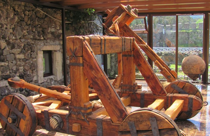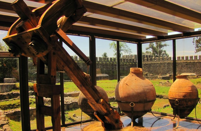 Катапульта и кувшины, в которых когда-то грузины хранили вино, закапывая их в землю. Фото Tengrinews.kz
