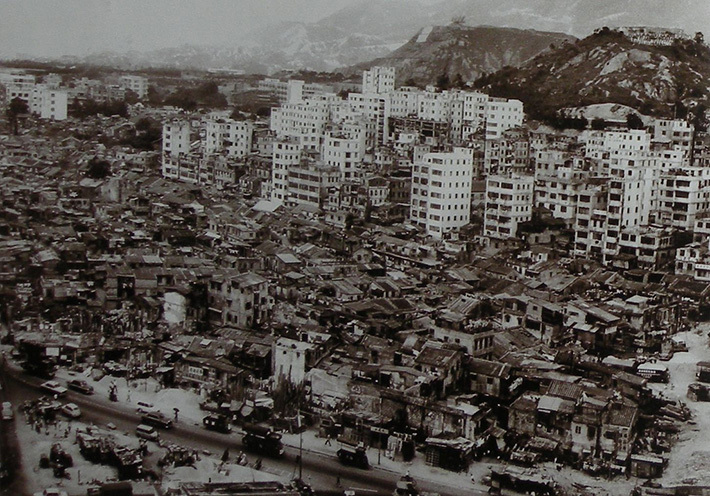 Строили жители Коулуна также сами. Сначала на территории города-крепости, удачно расчищенной от довоенной застройки бомбардировкой авиацией союзников, появились одно-, двух- и трехэтажные домики. Затем по мере увеличения численности населения района этажность начала стремительно расти. Росла и плотность застройки. Так менялся Коулун в течение десятилетий.
