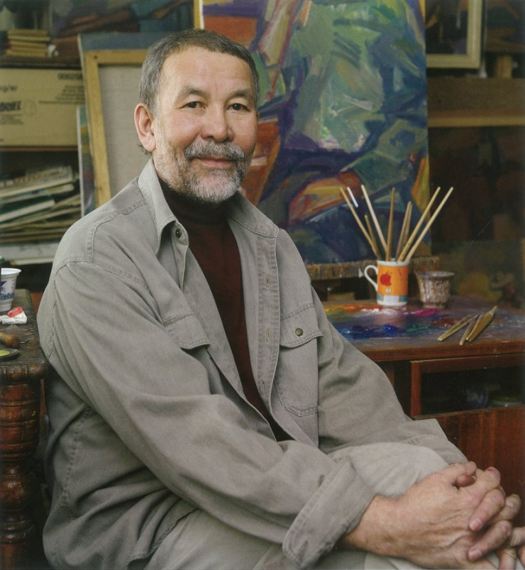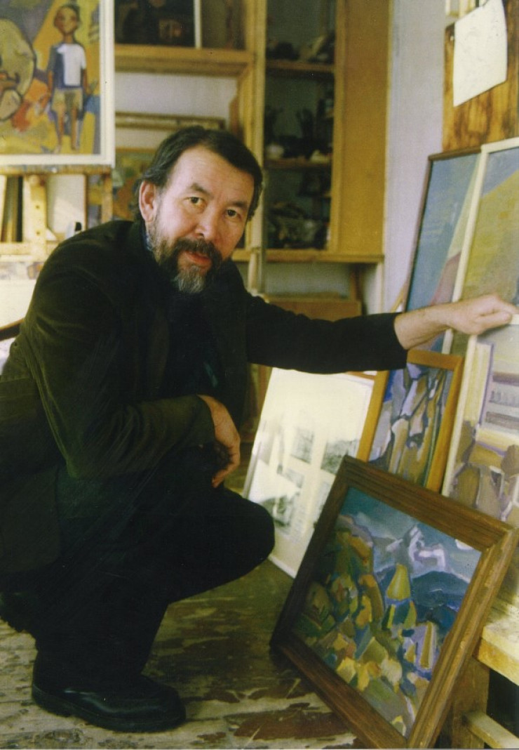 "Сначала я работал в издательстве "Жазушы" в Союзе писателей. Там узнал многих писателей, с которыми впоследствии сотрудничал. Первая книга была за авторством Мухтара Ауэзова "Строптивый", это отрывок из романа Абая, рассчитанный на детей. Для оформления этого рассказа я изучал пейзажи, продумывал, какие фигуры будут на фоне.