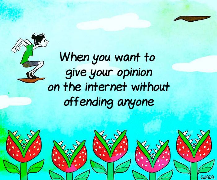 Когда пытаешься высказать свое мнение в интернете, стараясь никого не обидеть.