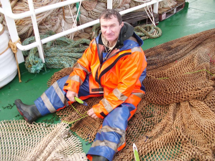 Последние 8 лет Игорь работает в голландской фирме. Если упрощенно, то его дело - следить за сохранностью трала и его отправкой за борт. Траулер имеет длину 120 метров. Трал - авоська два километра в длину, 135 метров в ширину и 95 по вертикали.